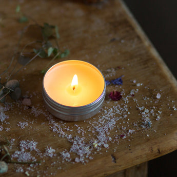 Sink into soothing nighttime calm with our Moonlit Dreams mini candle in a cute, travel-friendly tin.