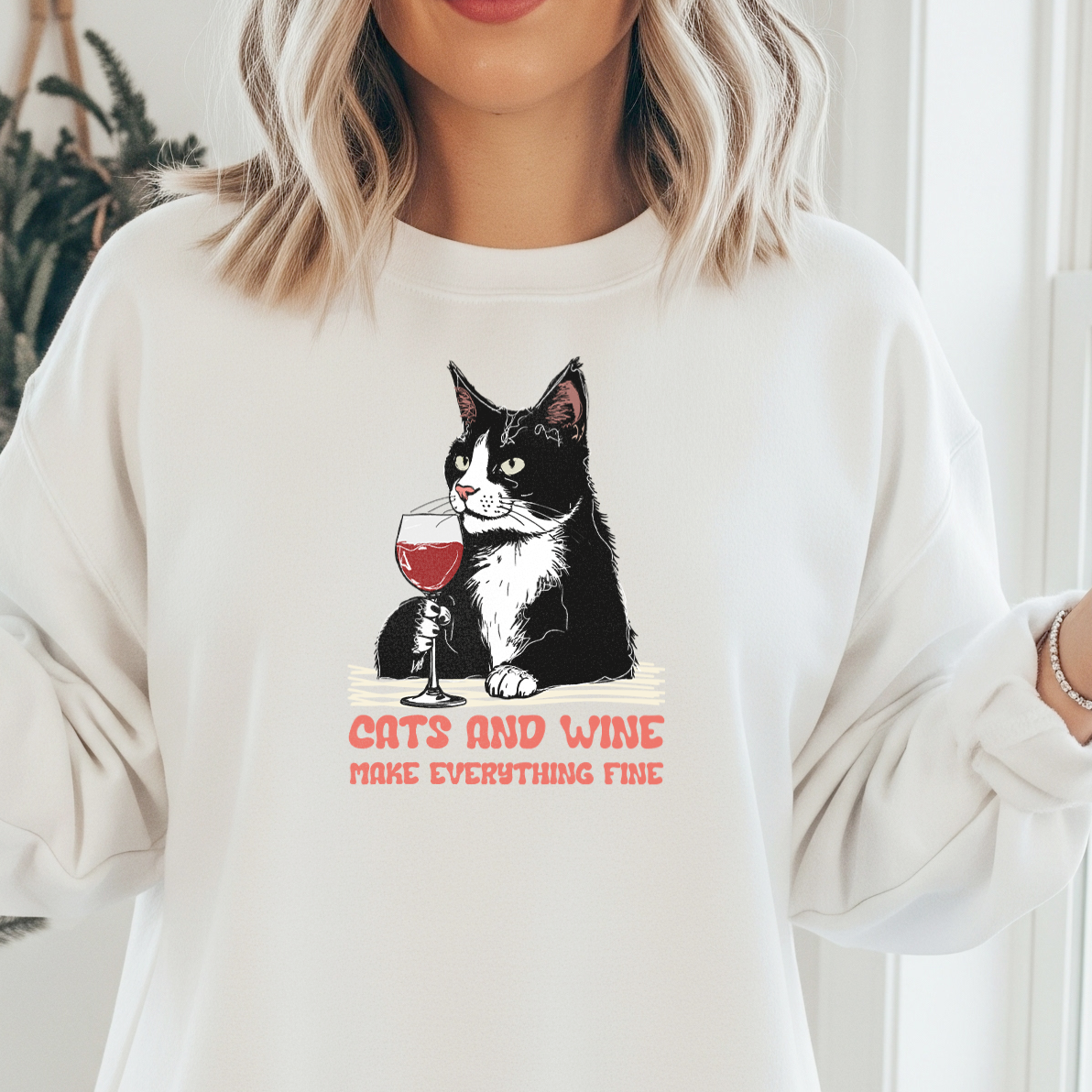 Cats and Wine Sweatshirt – Cosy Jumper for Cat Lovers