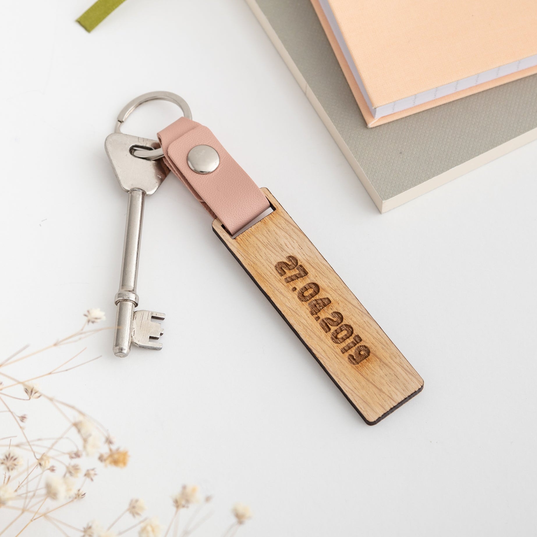 Personalise this wooden tag keyring with a special date or short message – perfect for a friend, a family member, or a little treat for yourself.