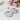 Shiny rhodium colour compact mirror packaged in a white organza gift bag.