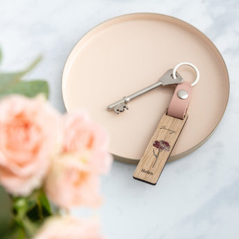 Made from smooth oak wood, each keyring features a watercolour-style illustration of the birth flower for your chosen month. Add a name to sit neatly underneath the flower, with the month written above for a lovely finishing touch.